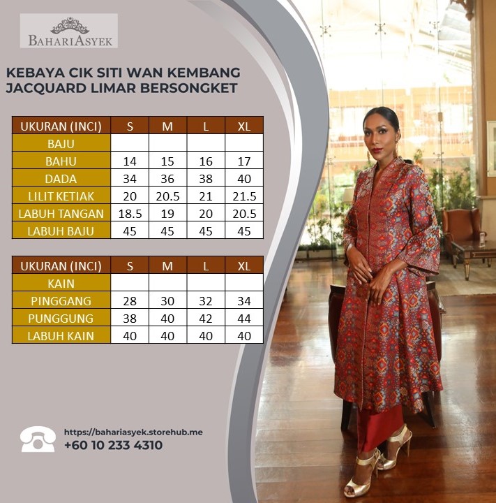 BAJU KEBAYA CIK SITI WAN KEMBANG 1 JACQUARD LIMAR BERSONGKET